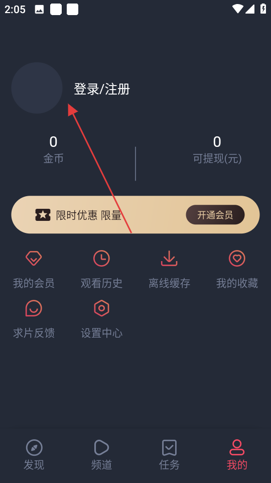 2、進(jìn)入我的頁(yè)面后,點(diǎn)擊登錄注冊(cè)進(jìn)行操作。