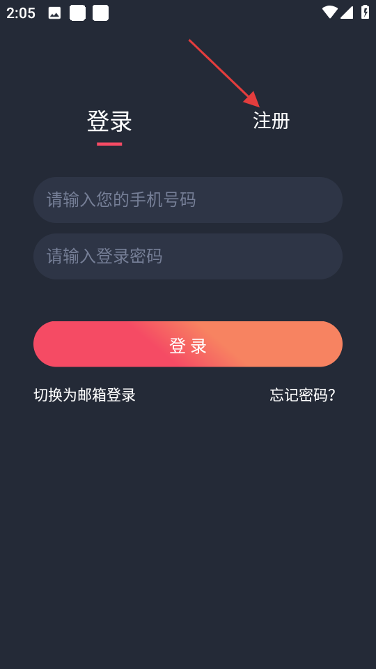 3、在登錄頁(yè)面,點(diǎn)擊注冊(cè)選項(xiàng),前往注冊(cè)頁(yè)面。