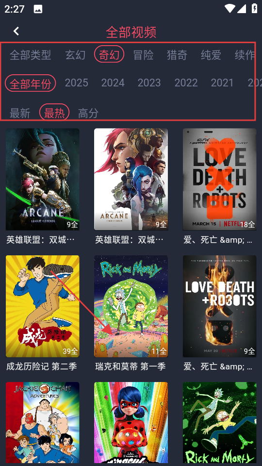 3、在篩選頁(yè)面,選擇好條件,找到并點(diǎn)擊瑞克和莫蒂第一季。