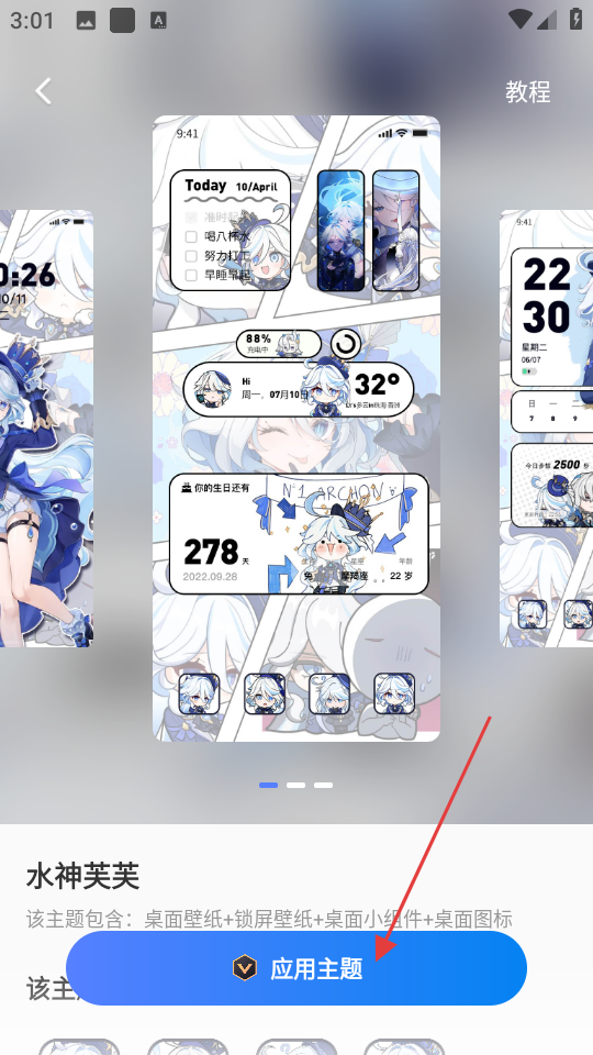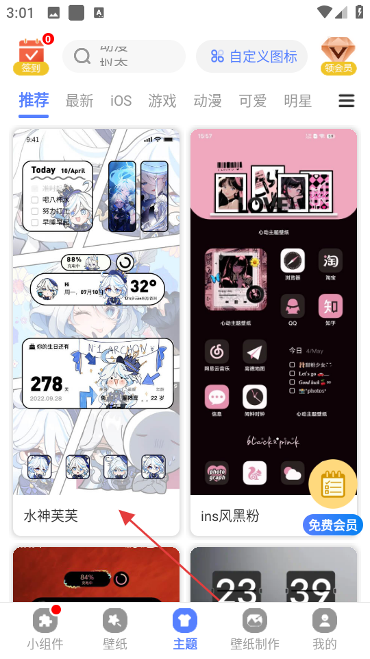 2、進(jìn)入主題頁面后,選擇喜歡的主題,比如水神芙芙。