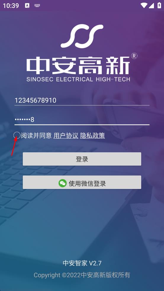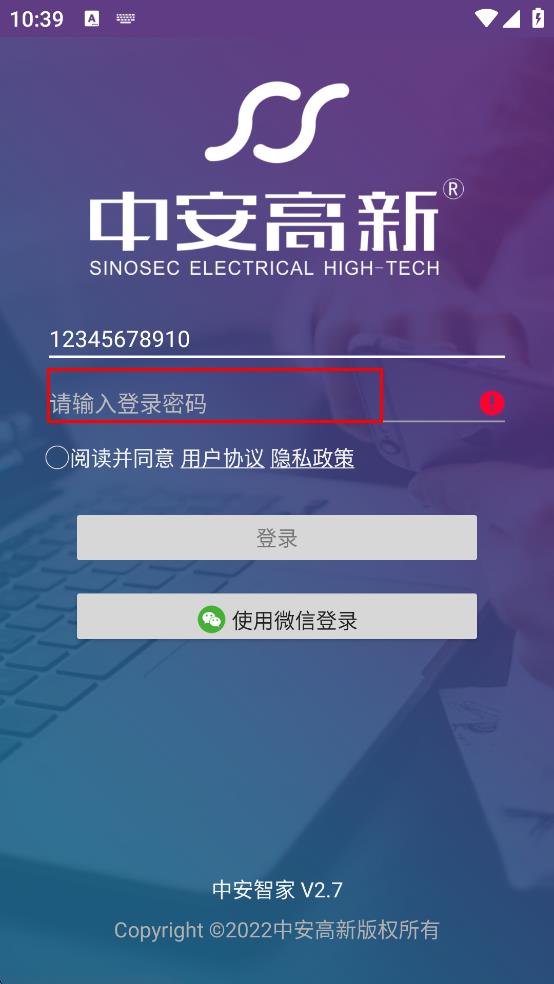 1、打開中安智家軟件,在登錄頁(yè)面輸入手機(jī)號(hào)碼。