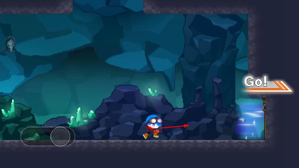1、進入洞穴場景后,跟隨Go!提示操控角色向右移動,探索布滿發(fā)光晶體的洞穴區(qū)域。