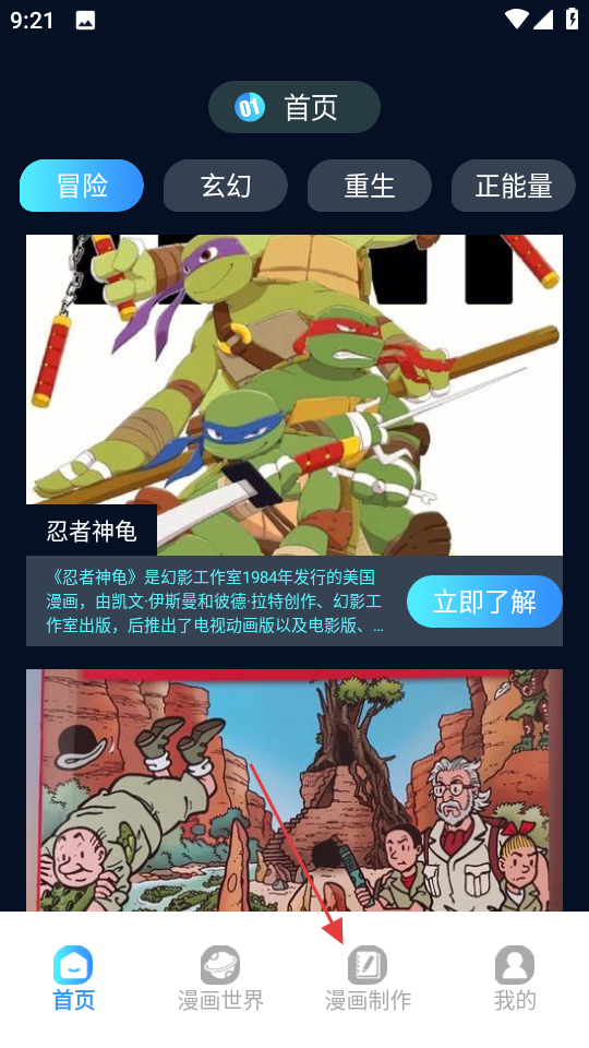 1、打開追漫大師,點擊底部導(dǎo)航欄的漫畫制作。