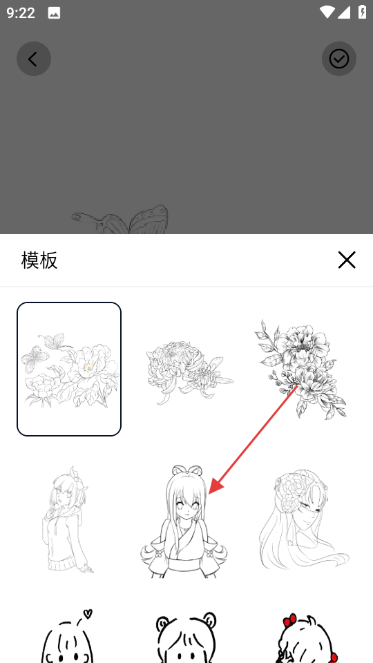 4、在彈出的模板列表中,選擇喜歡的模板進行繪畫。