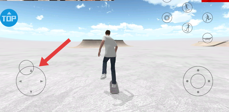1、基礎(chǔ)滑行操作通過左下角方向控制鍵,操控滑板角色的移動方向,向前鍵可讓角色加速滑行,左右鍵用于調(diào)整滑行路線。