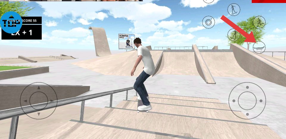 2、特技動作觸發(fā),當(dāng)滑行到合適位置如坡道、欄桿附近時,點擊右側(cè)對應(yīng)特技動作的按鈕,可觸發(fā)不同特技,像跳躍特技。