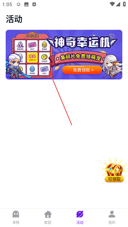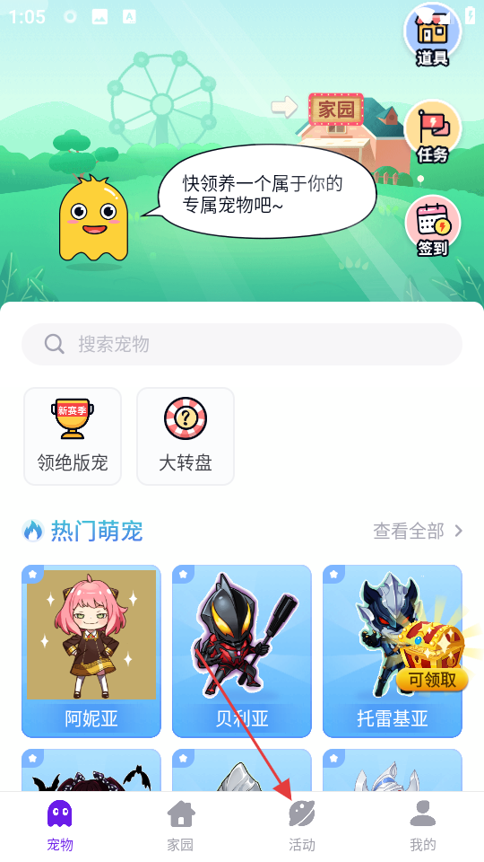 1、打開互動桌面寵物,點擊底部活動進入活動頁面。