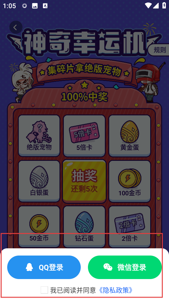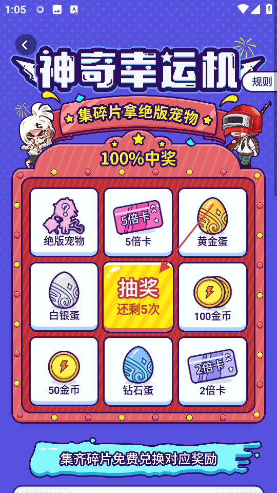 3、在神奇幸運機頁面,點擊抽獎有概率拿到絕版寵物。