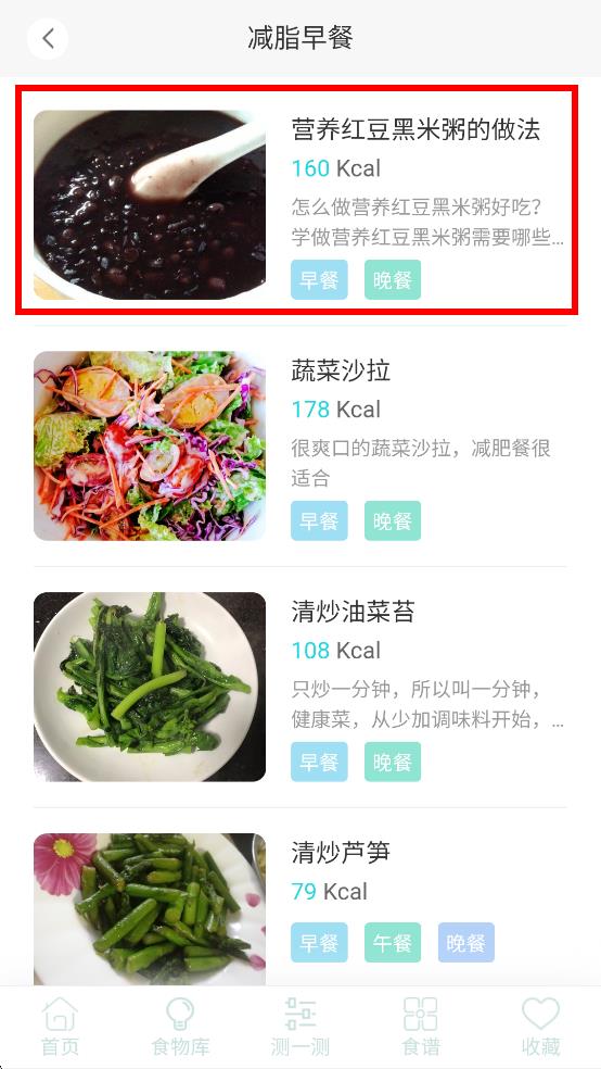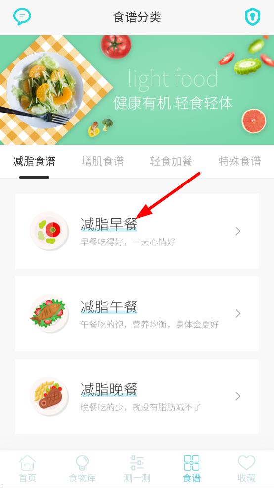 2、在食譜分類頁面,選擇減脂早餐,進入減脂早餐食譜列表。