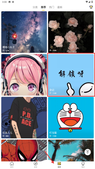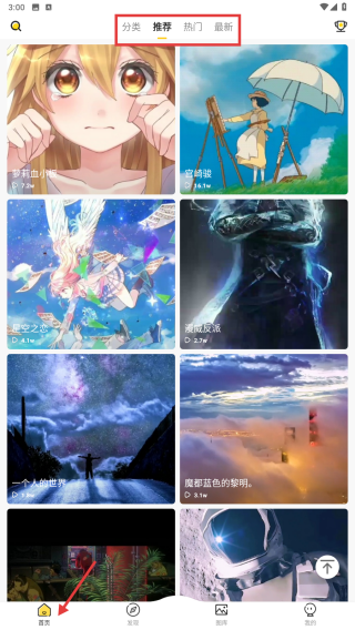 1、打開壁紙應(yīng)用,在首頁選擇分類推薦、熱門、最新等,瀏覽各類壁紙內(nèi)容。