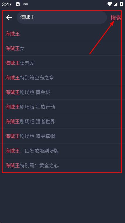 2、在搜索框中輸入要查找的內(nèi)容,如海賊王,然后點擊搜索。