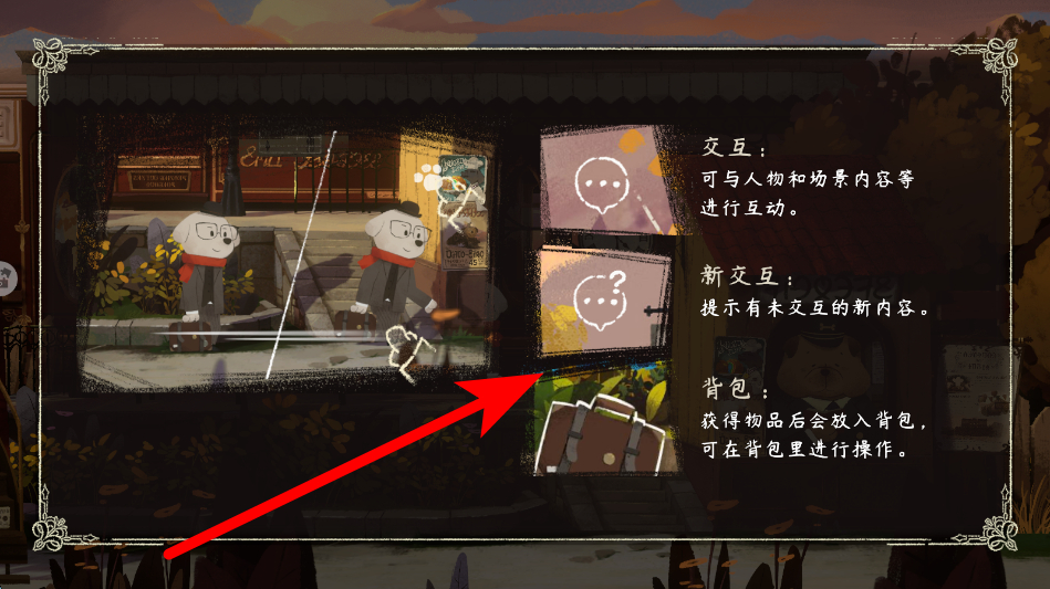 3、接著了解交互,查看游戲給出的交互說明,明確可與人物和場景內(nèi)容互動,以及新交互提示未交互新內(nèi)容等規(guī)則,便于后續(xù)操作。
