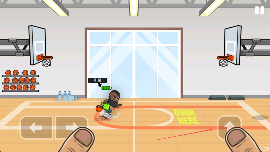 3、當(dāng)角色位于合適位置時(shí),點(diǎn)擊屏幕下方向上方向鍵進(jìn)行投籃操作。