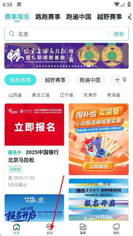 1、在應用首頁,點擊底部運動,進入運動頁面。
