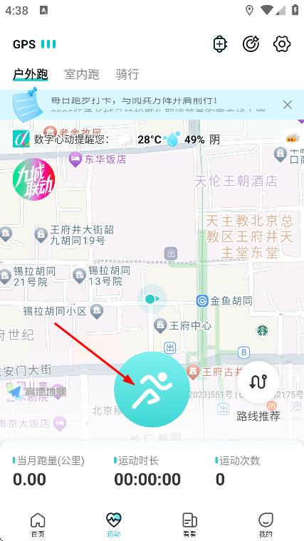 3、隨后在運動頁面,點擊運動圖標,可開始記錄運動。