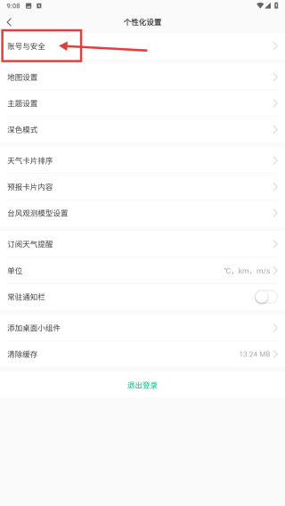 3、在設(shè)置頁面,點擊賬號與安全選項,進入賬號安全設(shè)置頁。