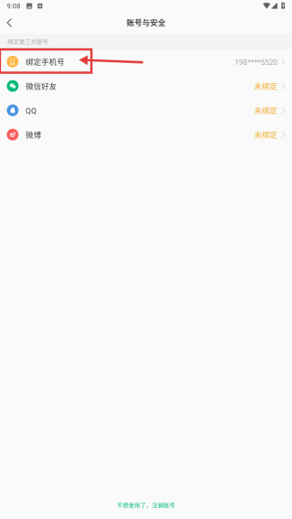 4、在賬號安全設(shè)置頁,點擊綁定手機號選項,進行手機號綁定操作。