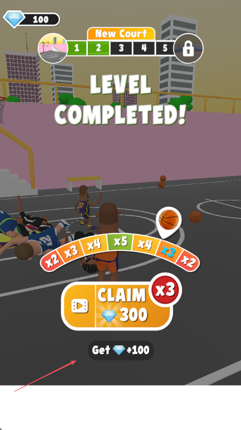 4、完成關(guān)卡看到LEVELCOMPLETED!提示后,點(diǎn)擊CLAIM按鈕,根據(jù)倍數(shù)規(guī)則領(lǐng)取300鉆石等獎(jiǎng)勵(lì)。