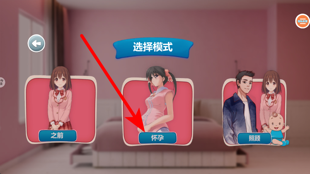 1、初始界面,有不同的模式可供選擇,比如懷孕模式,點擊對應(yīng)的模式選項,即可進入該模式下的游戲場景,開啟相應(yīng)的模擬體驗。