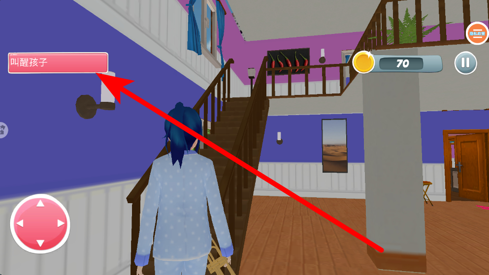 4、最后叫醒孩子,前往孩子所在的區(qū)域,根據(jù)任務(wù)要求,執(zhí)行叫醒孩子的操作,完成家庭中成員的喚醒任務(wù),體驗媽媽的日常。
