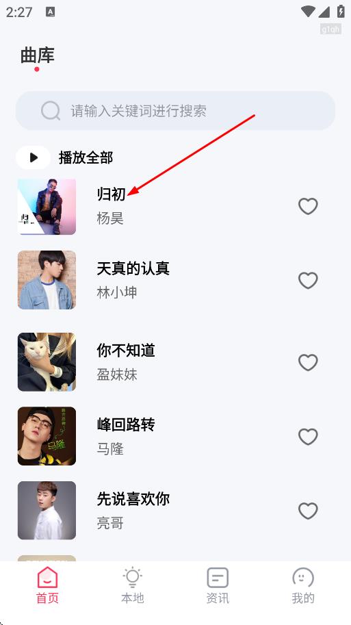 1、在曲庫頁面,點(diǎn)擊想要播放的歌曲,進(jìn)入播放頁面。