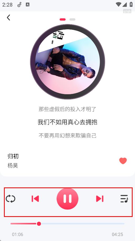 2、在播放頁面,可通過底部控制欄進(jìn)行播放、暫停、切歌等操作。