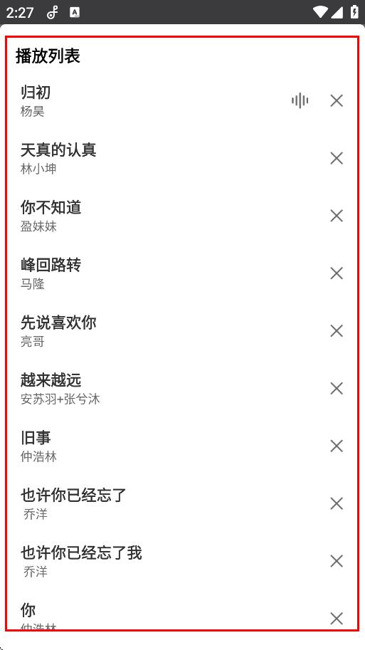 4、點(diǎn)擊播放列表圖標(biāo),可查看當(dāng)前播放列表中的歌曲。