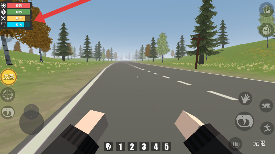 4、定期檢查角色狀態(tài)與資源儲(chǔ)備,當(dāng)飽食度、口渴度接近臨界值或武器彈藥不足時(shí),也要小心敵人突襲,在庇護(hù)所周邊區(qū)域補(bǔ)充資源。