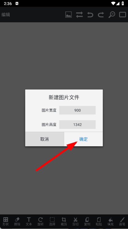 3、確認(rèn)圖片寬度和高度參數(shù)后,點(diǎn)擊確定,創(chuàng)建新的圖片文件。