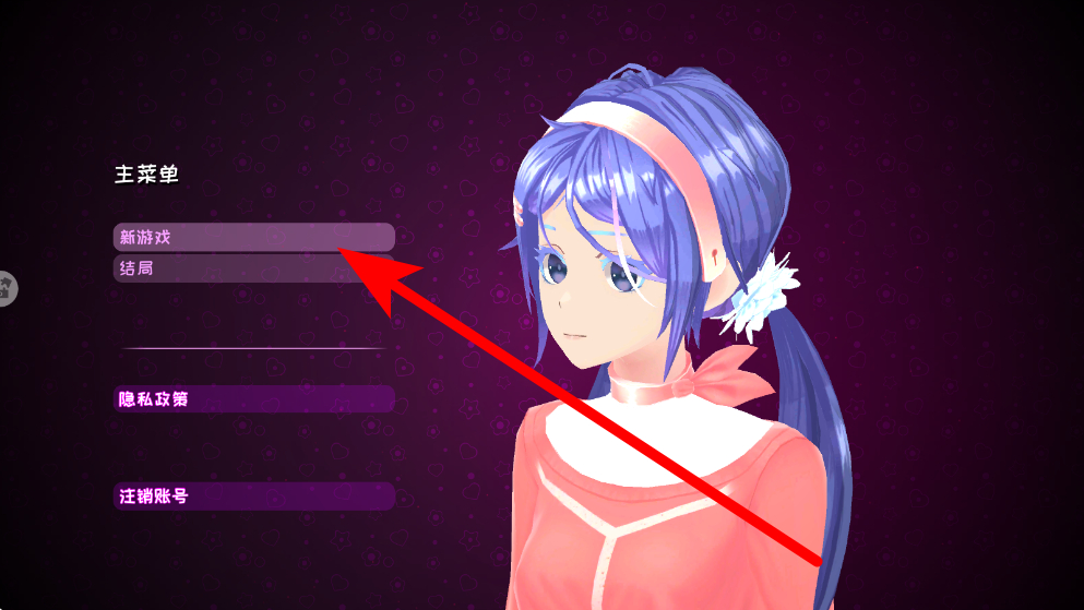 1、玩家開啟新游戲,在主菜單中找到新游戲選項(xiàng),點(diǎn)擊后即可開啟一段全新的戀愛生活之旅,進(jìn)入到后續(xù)的生活模擬環(huán)節(jié)。