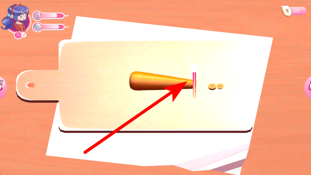 4、最后切菜做飯,獲取食材后,進(jìn)入切菜環(huán)節(jié),按照提示對食材進(jìn)行切割處理,之后進(jìn)行烹飪操作,做出美味的食物,體驗(yàn)做飯的樂趣。