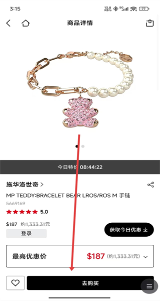 3、在進(jìn)入到商品詳情頁面后,可以點(diǎn)擊下方去購買按鈕,進(jìn)行購買。