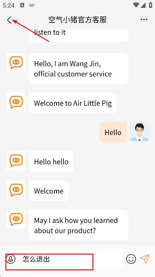 2、在客服聊天頁面,點擊左上角返回,回到消息頁面。