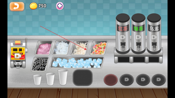 3、添加完配料后,將做好的奶茶放置在封口機(jī)上,完成奶茶制作,滿足顧客需求獲取金幣收入。