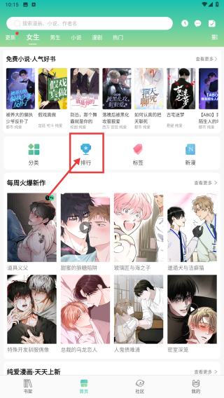 1、打開畫涯漫畫應(yīng)用,點(diǎn)擊排行按鈕,進(jìn)入排行榜頁面。