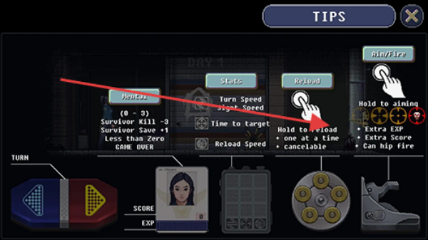 1、進入后先查看TIPS界面,了解操作按鍵功能,如按住可瞄準(zhǔn)射擊。