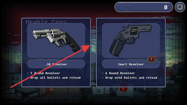 2、在武器選擇界面,選擇初始武器,了解左輪手槍,換彈時會丟棄所有子彈的特性。