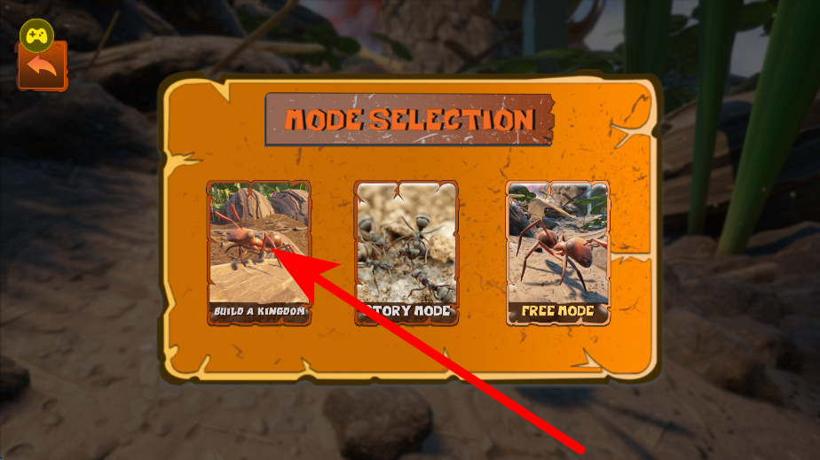 1、選擇模式開(kāi)始時(shí),可模式選擇界面挑選合適的模式,如BUILDAKINGDOM等,不同模式會(huì)帶來(lái)不同的游戲體驗(yàn),開(kāi)啟后續(xù)的螞蟻模擬之旅。