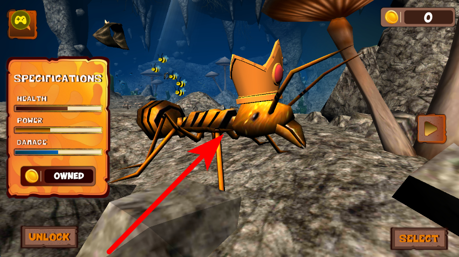 2、選擇螞蟻需查看不同螞蟻的屬性,像健康、力量、傷害等,根據(jù)需求挑選合適的螞蟻,讓其成為自己操控的對(duì)象,開(kāi)啟模擬探索。
