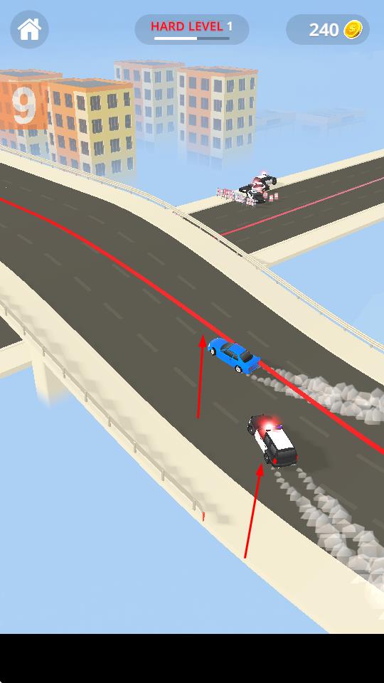4、在高難度關(guān)卡,會遇到警車追逐,需靈活駕駛車輛,擺脫追逐并抵達目標(biāo)位置,挑戰(zhàn)更高難度。