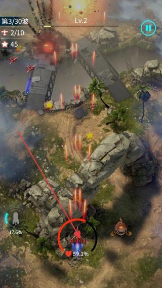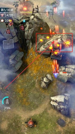 1、進(jìn)入主界面查看屏幕上方顯示的波次與等級(jí)等信息操控戰(zhàn)機(jī)移動(dòng)射擊消滅敵方飛機(jī)。