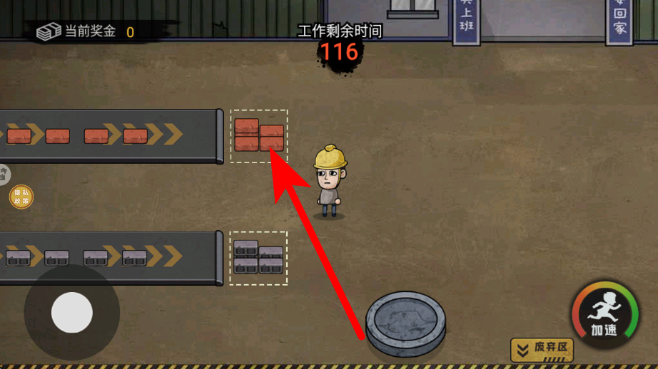 4、開始搬磚打工時(shí),在選定工作后,進(jìn)入工作場(chǎng)景,按照要求將磚搬運(yùn)到指定地方,在規(guī)定的工作剩余時(shí)間內(nèi)完成工作,體驗(yàn)搬磚打工的過(guò)程。