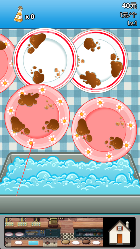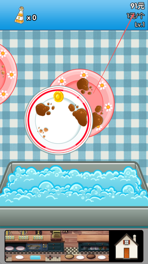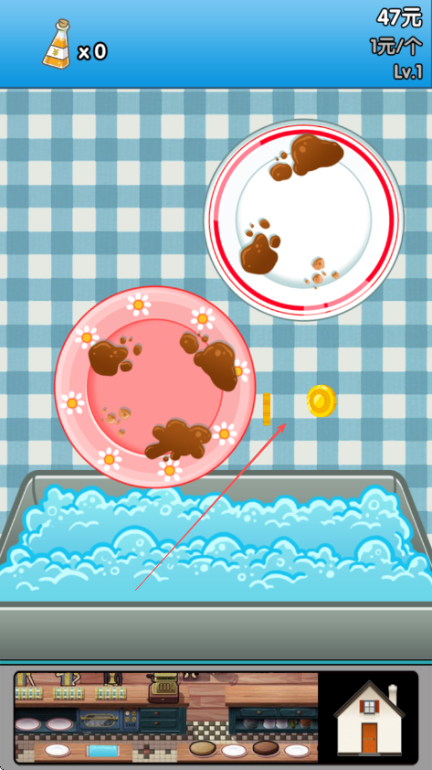 3、清洗過(guò)程中留意盤(pán)子上出現(xiàn)的金幣,收集金幣增加收入。
