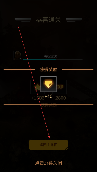 4、成功通關(guān)后查看獲得的獎(jiǎng)勵(lì)再點(diǎn)擊返回主界面按鈕結(jié)束本局游戲。