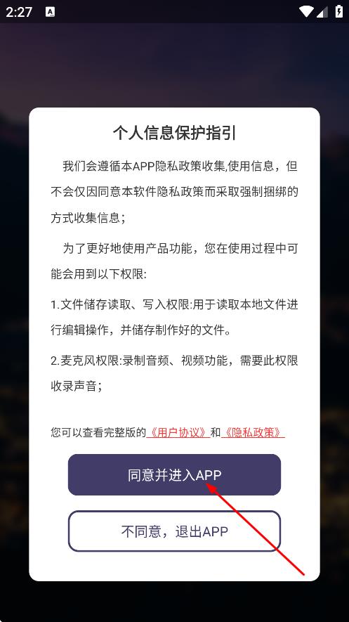 1、在個(gè)人信息保護(hù)指引彈窗中,點(diǎn)擊同意并進(jìn)入APP,進(jìn)入應(yīng)用內(nèi)。