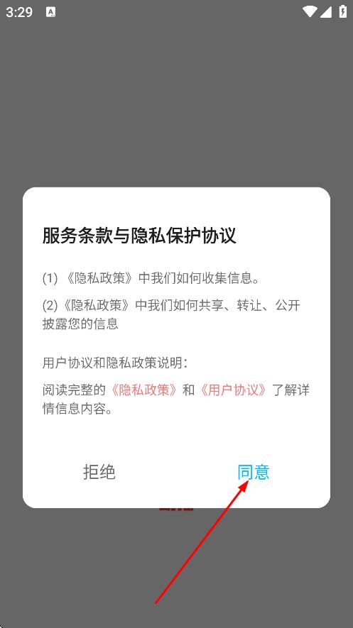 1、在服務(wù)條款與隱私保護(hù)協(xié)議彈窗中,點(diǎn)擊同意,進(jìn)入應(yīng)用主頁面。