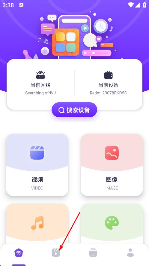 2、在應(yīng)用主頁面,點(diǎn)擊底部視頻相關(guān)圖標(biāo),進(jìn)入播放器頁面。
