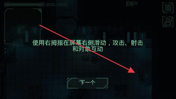 2、使用右拇指在屏幕右側(cè)滑動(dòng)進(jìn)行攻擊、射擊以及和對(duì)象互動(dòng)。