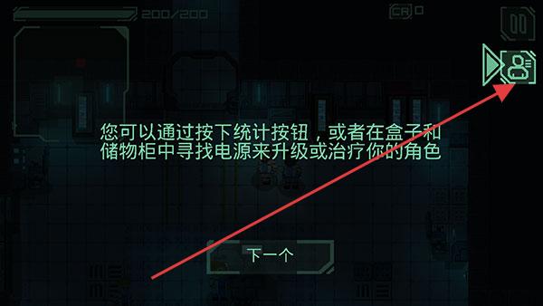 4、點(diǎn)擊統(tǒng)計(jì)按鈕或在盒子、儲(chǔ)物柜找電源來(lái)升級(jí)或治療角色提升生存能力。