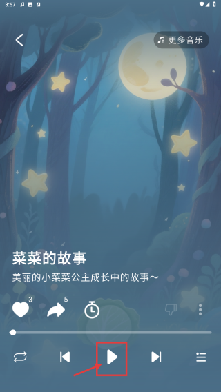 4、在故事播放頁面,點(diǎn)擊播放按鈕,開始播放菜菜的故事。